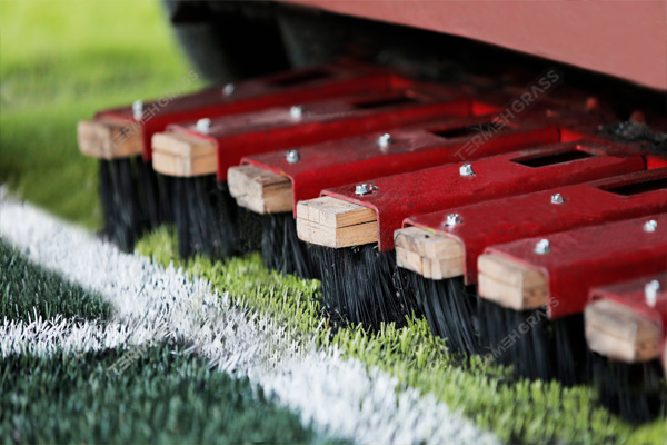 در نحوه تمیز کردن چمن مصنوعی باید از جارو یا برس پلاستیک استفاده کنید. استفاده از برس های فلزی باعث آسیب دیدگی چمن می شود. برای این که چمن را به طور کلی شانه بزنید، از یک قسمت شروع به کار کنید. از همان طرف به راه خود ادامه دهید تا کل چمن به صورت نواری شانه شود.