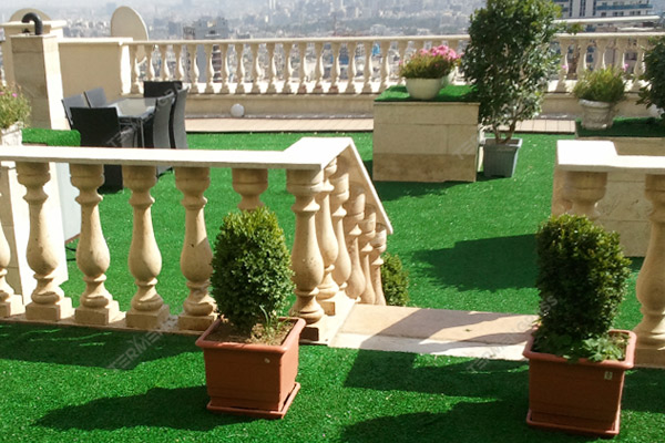 یکی از راهکارهای ایده آل برای طراحی باغ های پشت بام با چمن مصنوعی، استفاده از چمن مصنوعی مخصوص بالکن است. چمن مصنوعی با اضافه کردن سرسبزی، فضای بی روح بالکن یا پشت بام را به فضای دلنشین و آرامش بخش تبدیل می کند که بسیار خوشایند به نظر می رسد. همچنین نصب این نوع چمن نسبت به چمن واقعی روی پشت بام بسیار آسان تر است و خیلی سریع آماده می شود.